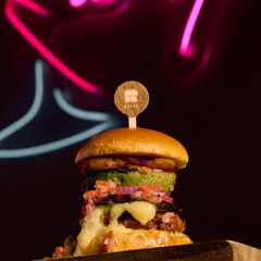8oz bacon-wrapped beef patty, molten cheese-stuffed core,
